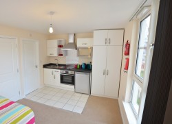 This studio comes beautifully furnished bedrooms with ensuite and a kitchen. There is a 3/4 bed, a wardrobe, desk, chair and a TV.